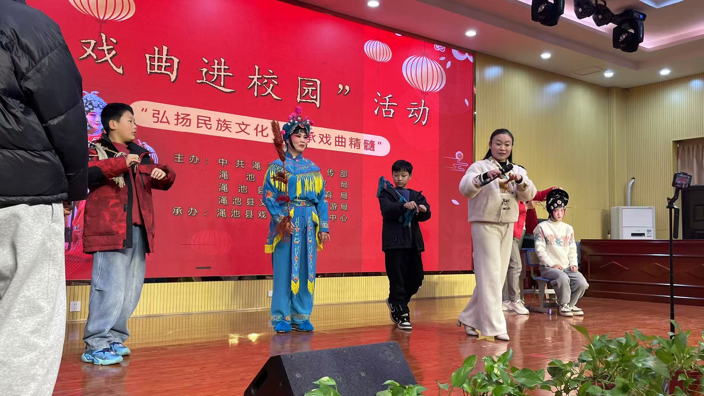 互动环节成为活动高潮。孩子们争相登台,在演员指导下学甩水袖、练台步、仿唱腔,稚嫩的动作中透着专注。“原来戏曲服饰的纹样都有讲究,太有意思了!”一名参与体验的学生兴奋地说。此次活动还融入仰韶文化特色,将地方文脉与戏曲艺术巧妙结合,既落实了省市戏曲传承要求,更让青少年在亲身体验中读懂传统文化。
