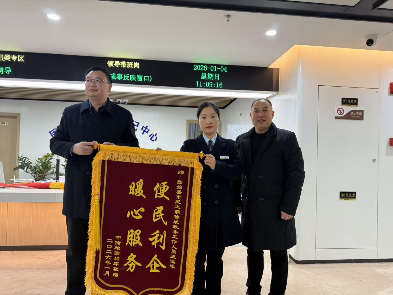 大河网讯 “原以为赶不上年底截止时间了,没想到你们效率这么高!”1月4日,中央储备粮潢川直属库有限公司固始分公司负责人马明(化名)将一面写着“便民利企,暖心服务”的锦旗送到信阳市固始县政务服务中心工作人员王远远手中。这面锦旗既承载着企业的真切谢意,更映照出固始县政务服务的速度与温度。