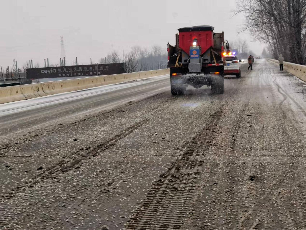 为保障路网畅通,该县建立交通运输、气象、公安、乡镇(街道)联动会商机制,实时发布灾害预警信息、路况提示及交通调整公告,引导公众合理出行。针对桥梁、陡坡、急弯等易积雪结冰路段,预置融雪剂230吨、防滑料500立方,调配除雪撒布机、铲车等应急设备35台(套),组织工作人员不间断巡查,在国省干线和重要县乡道路关键路段撒布融雪剂,对积雪结冰严重路段及时进行机械、人工清理,确保道路通行顺畅。