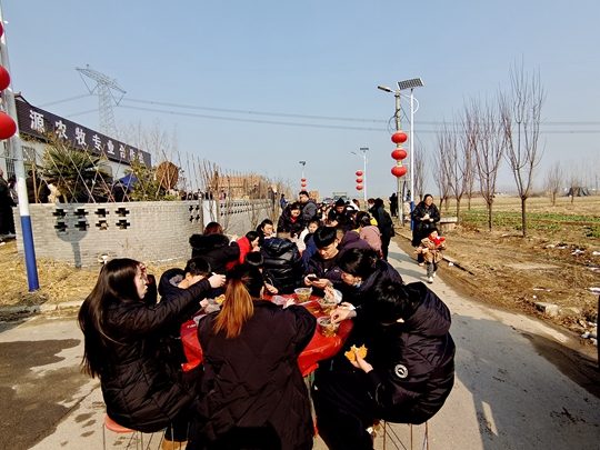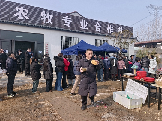 大河网讯 车辆穿梭、人潮涌动。两天内,只有700多人口的小村庄涌入1000人。1月24日,中牟新区大孟街道万胜村瑞栀源农牧合作社的小院内熙来攘往,原来,在这热闹景象背后,是一锅香飘四溢的牛肉大烩菜在“施展魅力”。