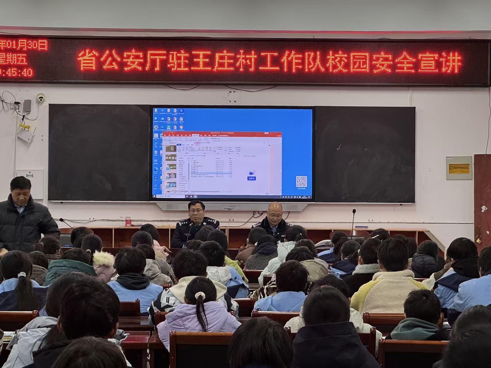 此次宣讲活动由省公安厅驻王庄村第一书记王建庄全程主持。宣讲伊始,王建庄结合农村道路交通安全实际,向师生们阐明了寒假出行的安全风险点,强调了遵守交通法规的重要性,号召同学们将安全意识内化于心、外化于行,同时主动向家人传递交通安全知识,以 “小手拉大手” 方式营造文明出行氛围。他表示,驻村工作队始终把辖区群众安全放在首位,此次联合交警部门开展校园宣讲,既是落实 “我为群众办实事”的具体举措,也是乡村平安建设的重要内容,旨在通过精准宣传提升青少年交通安全防范能力。
