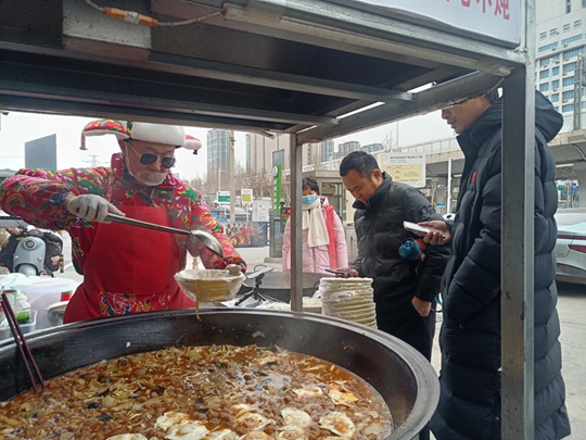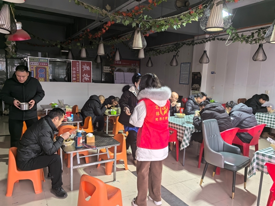 活动启动后,门店门前迅速升温。身着工装的环卫工人有序就餐,热菜热汤驱散冬日寒意;实惠可口的大锅菜也吸引周边上班族驻足购买,堂食与外带订单同步增长,曾经冷清的店面重现烟火气。农民工纷纷点赞:“干活累了能吃上免费热饭,既暖胃又暖心。”店主坦言:“社区的点子帮我们打开了销路,人气旺了,生意也慢慢好起来了。”