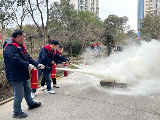 实战演练环节将活动推向高潮。物业安保队伍模拟小区内出现违规燃放烟花爆竹、引发零星火情的突发场景,接到预警后,应急小组秒速集结、分工协作,疏散组立即引导周边居民有序撤离至安全区域,警戒组拉起警戒线封锁现场,灭火组熟练使用灭火器、消防水带快速扑灭明火,处置组对残留火种进行彻底清理,整个流程衔接紧密、动作规范、干脆利落,配合严丝合缝,短短数分钟就完成从险情出现到彻底处置的全流程,展现出高效的应急处置能力。居民代表近距离观摩,直观学习火灾扑救和疏散逃生技巧,纷纷表示收获颇丰。