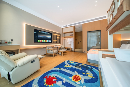 “春节期间,我们特别推出亲子主题套房、特色年味早餐及景区接送服务,针对春节家庭出游与联线打卡需求,我们在智能客房、景观视野基础上,升级亲子产品与年味服务,搭配景区接送,让游客住得舒心、玩得省心。”牟山前国际酒店总经理李磊介绍,目前酒店春节预订持续升温,亲子与家庭套餐备受青睐,已全面做好客流高峰接待准备。