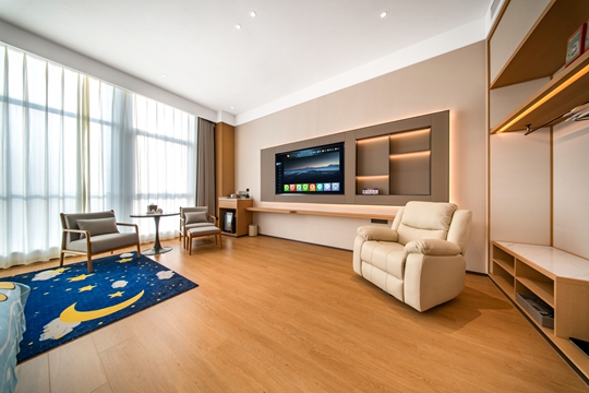 “从预订数据来看,近一周酒店咨询量环比上涨65%,亲子房型预订占比超七成。”智璞酒店负责人辛永航介绍,依托中牟新区优质的区位条件与服务环境,智璞酒店已成为众多游客春节住宿的首选,提前引爆新春出游住宿热潮。同处文旅核心圈的牟山前国际酒店,同样以特色服务成为多景区联游的优选。酒店配备智能客控系统,客房舒适宁静,部分房型可将牟山景致尽收眼底。