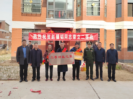 “一人立功、全家光荣”。据了解,赵骥韬同志入伍30年来,多次获得优秀士兵、技术能手,并荣立三等功一次,二等功一次。在赵骥韬家中,“报喜”队伍将立功喜报和慰问品送至赵骥韬及其家人手中。有关部门负责同志向赵骥韬表示热烈祝贺和崇高敬意,立功喜报既是个人奋斗、家庭支持的成果,更是雁鸣湖镇人民的骄傲,充分彰显了新时代军人的报国情怀与强军担当。大家同军属亲切交谈,向他们为国防和军队培养了优秀人才表示感谢,同时详细询问了家庭生活情况。