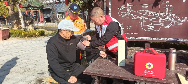 正月初四,天刚破晓,小商桥景区还未正式开门迎客,三名身着红十字会服装的队员便已开始忙碌起来。他们仔细准备着一天所需的急救物资,从清洁消毒到止血包扎、工具、辅助、药品等设备,每一项都检查得认真细致,确保万无一失。