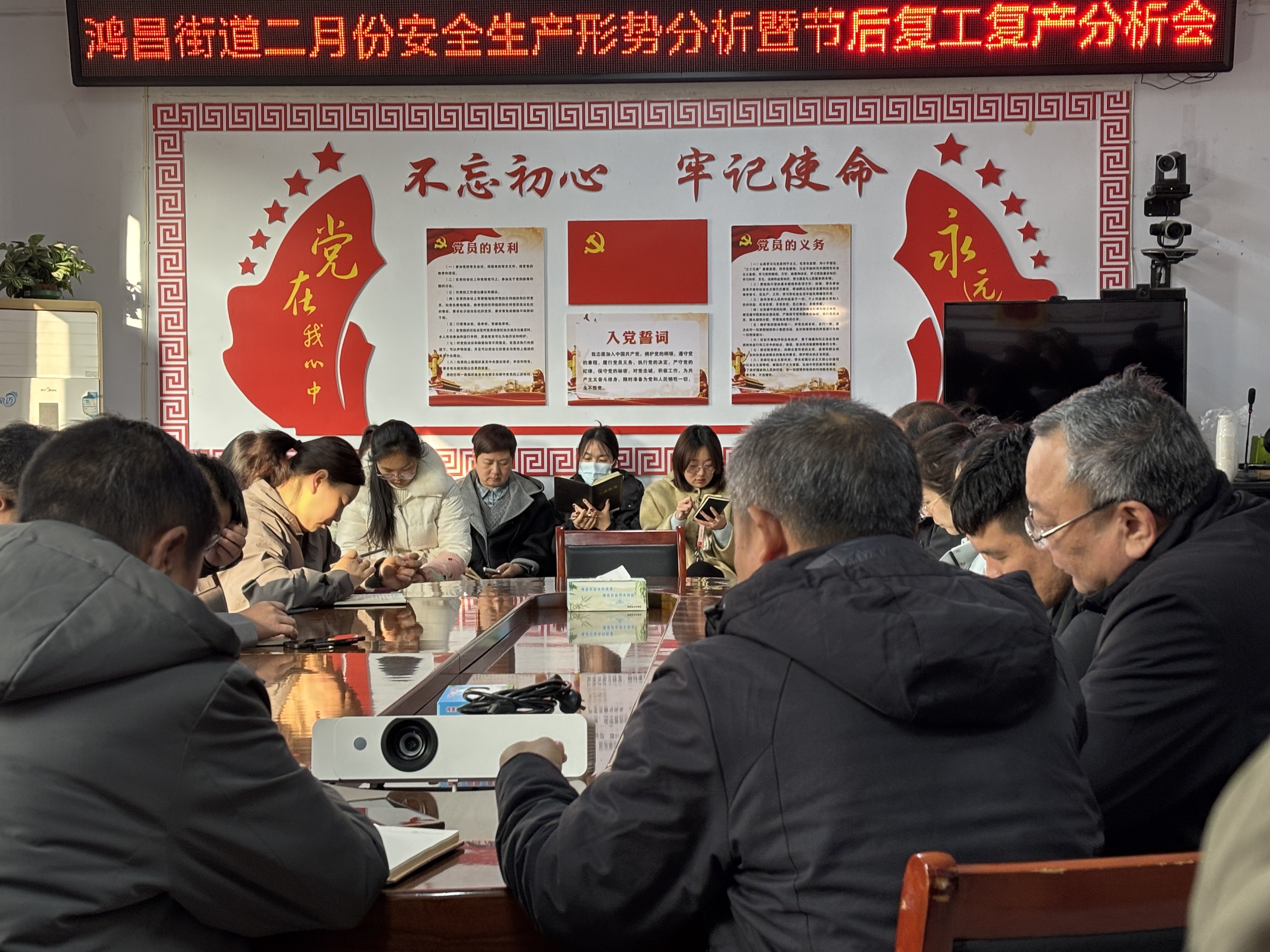 大河网讯 2月24日,农历正月初八,春节假期后的首个工作日,焦作市博爱县鸿昌街道迅速组织召开2026年二月份安全生产形势分析暨节后复工复产工作部署会。会议旨在分析当前辖区安全生产形势,部署节后复工复产安全防范工作,动员全体干部职工收心归位,以“时时放心不下”的责任感,坚决守牢安全底线,为全年工作开好局、起好步。