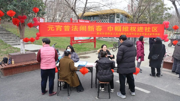 大河网讯 在元宵佳节与“三八”国际妇女节双节将至之际,2月27日下午,漯河市召陵区法院审管办副主任李文杰和民庭副庭长刘珂馨,走进漓江路社区开展猜灯谜和妇女维权主题普法宣传活动,将传统民俗乐趣与法治维权服务融为一体,为女性同胞送上别样的节日祝福。