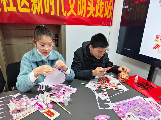 活动现场,社区工作人员早已为大家准备好手工材料包,内含狮灯模型、毛绒绸带、LED灯串等制作材料。居民们在工作人员的细致讲解与耐心指导下动手制作狮灯,有家长带着孩子亲子协作,有放假在家的高中生踊跃参与,也有精神矍铄的退休老人一展身手。