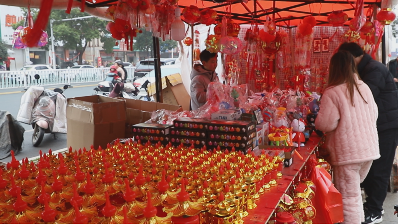 花灯迎佳节,年味暖人心。在潢川县的各个灯笼市场,象征团圆吉祥、喜庆红火的各式灯笼悬挂在醒目位置,放眼望去一片红火,节日氛围十足。
