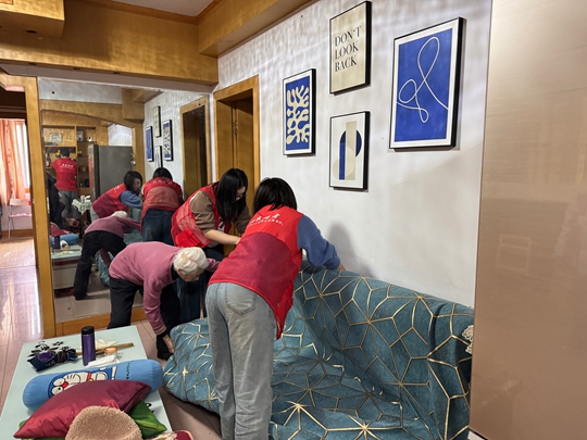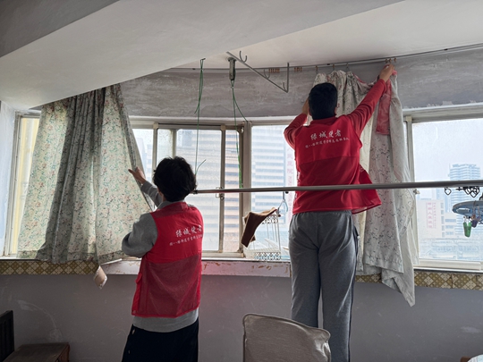 随后,青少年志愿者分工明确、默契配合,迅速投入到志愿服务中,用行动践行责任与担当。大家手持抹布、有条不紊地开展居家清洁工作:有的弯腰擦拭柜子,还有的细心擦拭桌子,同时,几名志愿者为刘奶奶悬挂上清洗过的窗帘。整个服务过程中,孩子们耐心细致、一丝不苟,用实际行动诠释了新时代青少年的责任与担当,也让雷锋精神在实践中落地生根。