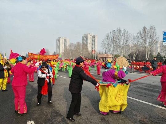 大潘庄艺术团民风淳朴、文脉绵长,他们带来的传统民俗表演原汁原味、饱含温情,用娴熟的技艺和真挚的笑容,将传统年味与乡土情怀尽情挥洒,展现了街道的文化底蕴!活动中,东风路街道带着对人民群众最美好的新春祝福,踏着奋进的步伐,充分展现了基层群众昂扬向上的精神风貌与街道文化建设的丰硕成果,成为巡演中的一大亮点。