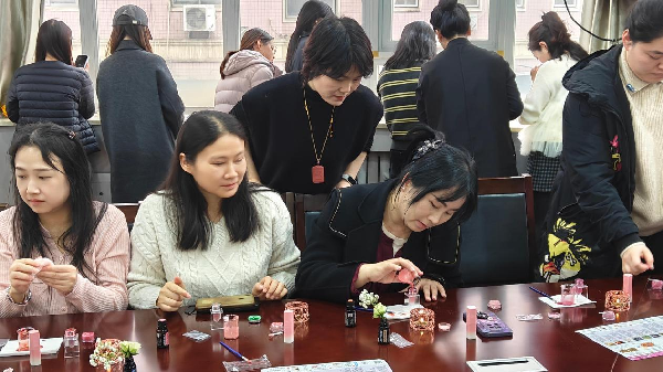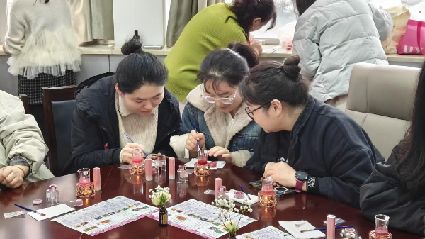 “大家可以根据自己的喜好选择色粉,调配出独一无二的颜色。”手工老师详细讲解了口红的历史渊源、制作原理、原料配比以及注意事项。平日里埋首于卷宗、逻辑严谨的女干警们瞬间化身为专注的“手艺人”。从挑选色号、研磨搅拌,到隔水加热、灌装定型,每一个步骤大家都一丝不苟。