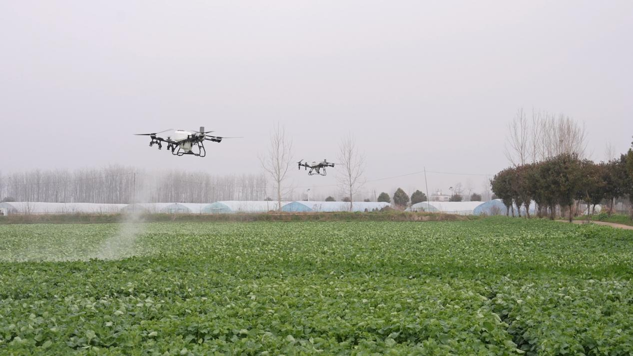 农用无人机正在开展喷药、施肥作业