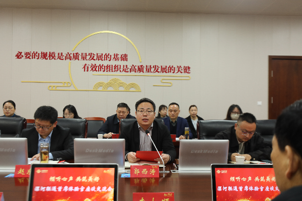 座谈会上,漯河联通党委书记、总经理郭西涛发表了热情洋溢的致辞,以“用户、体验、未来”三个关键词,阐述了公司的发展理念与决心。