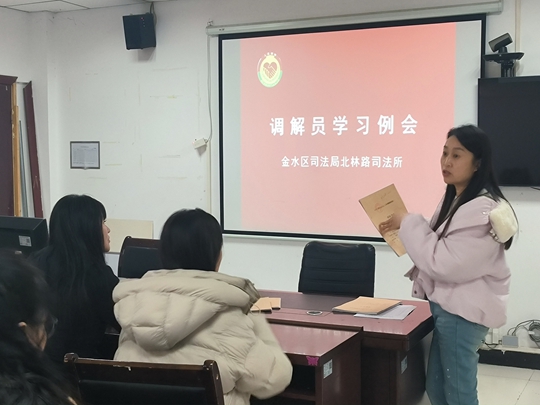 大河网讯 为进一步夯实人民调解工作基础,提升辖区人民调解员的业务能力和法律素养,推动调解文书制作的规范化、标准化。近日,郑州市金水区北林路司法所组织开展了人民调解员岗位练兵活动,以卷宗促学习以规范提质效。此次活动旨在通过剖析问题、观摩精品、明确标准,全面提升调解工作的实战水平与案卷质量,切实筑牢基层社会治理的“第一道防线”。