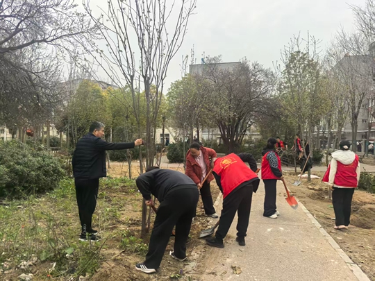 活动现场,全体参与人员热情高涨,分工协作、同步推进,呈现出一派热火朝天的忙碌景象。一方面,大家对小花园内卫生死角、乱堆乱放、生活垃圾等进行全面清理整治,规整公共区域、清扫路面杂物,改善环境卫生面貌;另一方面,趁着春日好时节,大家挥锹挖坑、扶苗填土、提桶浇水,合力栽下一株株树苗,为整治一新的小花园增添了盎然绿意与蓬勃生机。