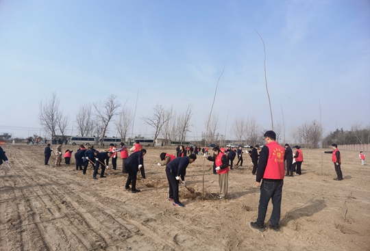 活动现场,大家分工协作,挥锹铲土、扶苗围堰、提水浇灌,每一道工序都认真细致,确保栽一片、活一片、绿一片。同时,依托“互联网+全民义务植树”平台,广泛发动社会各界积极参与义务植树活动,持续深化全民共建共享的生态治理格局,力争全区义务植树尽责率达90%以上。