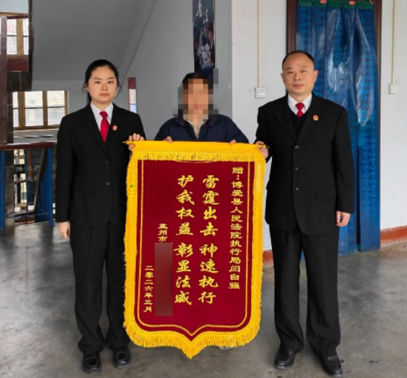 从案件受理到顺利执结,该案仅用4个工作日,真正实现快执行、快兑现、快结案。博爱法院高效负责的执行工作,让申请执行人深受感动,特意将一面印有“雷霆出击,神速执行”的锦旗送到承办人杨颖手中,以示感谢。