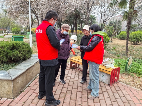 大河网讯 春风送暖,普法先行。为进一步提升辖区群众法治素养,引导居民学法、懂法、守法、用法,近日,郑州市金水区北林路司法所组织“林理和”普法志愿者及法律顾问,走进辖区休闲小游园开展春季普法宣传活动,将法律服务送到群众“家门口”。