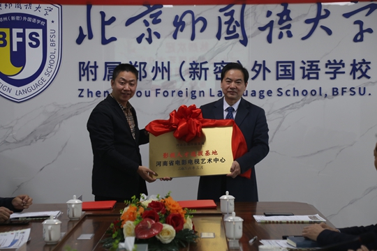 北京外国语大学附属郑州(新密)外国语学校开设多语种课程,以“求真至善 作育真人”为育人宗旨,此次合作是影视艺术资源与优质基础教育强强联合的重要成果,也是落实国家美育教育要求、推动文化艺术传承创新的具体实践。双方将以签约授牌为新起点,深耕细作、久久为功,共同培养更多有理想、有情怀、有专业素养的新时代艺术人才,为河南文化强省建设贡献新的力量。(王君杰/文图)
