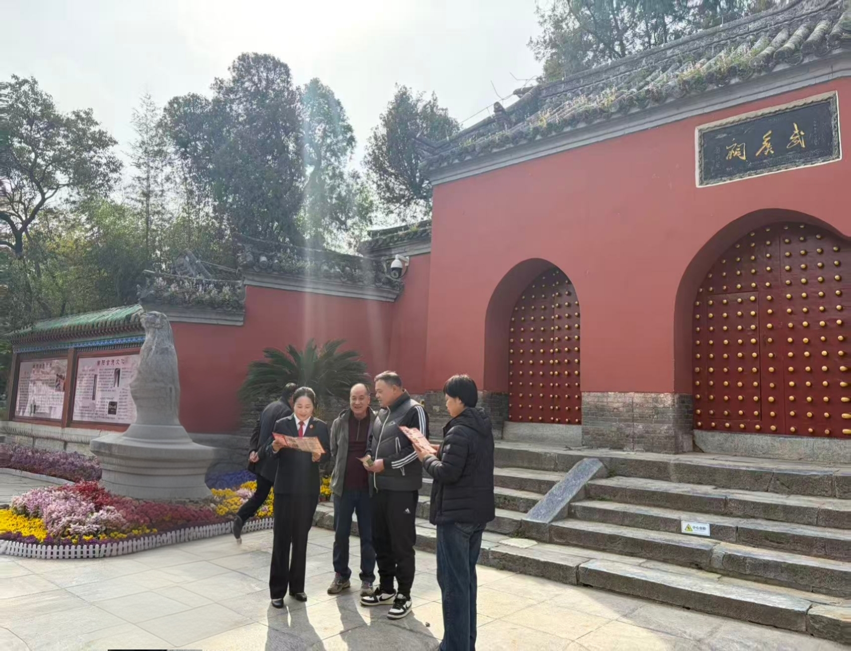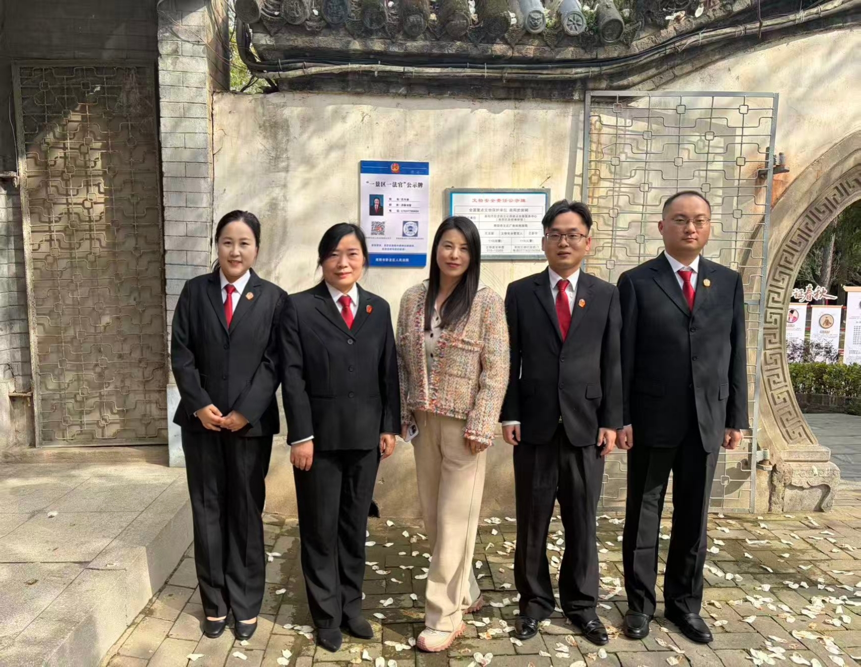 武侯祠作为三国文化核心地标、诸葛亮躬耕隐居圣地,承载着厚重的历史记忆与文化内涵,是南阳面向全国的重要文化名片。随着文旅市场持续升温,景区在运营管理、游客服务、消费纠纷处置、文物保护等方面的司法服务需求日趋迫切。卧龙区法院主动靠前、精准发力,紧密对接景区发展实际需求,积极延伸司法服务触角,在武侯祠景区设立 “一景区一法官” 法律服务公示牌,明确包联法官信息、压实工作责任,全力实现司法服务靠前一步、矛盾化解前置一层、法治保障全程跟进。