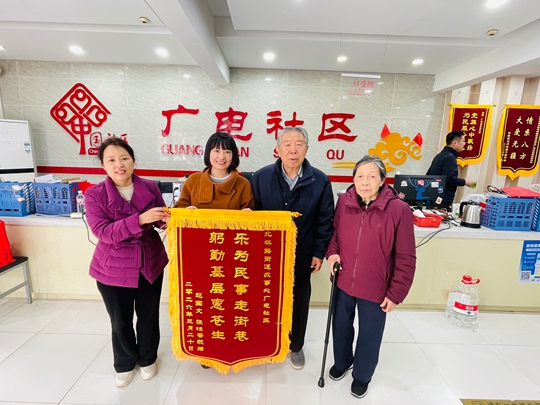 大河网讯 3月24日,郑州市金水区北林路街道广电社区党群服务中心暖意融融,在教育学院家属院居住的两位80多岁老人将一面鲜红的锦旗送到工作人员手中,以最诚挚的方式感谢社区长期以来的贴心帮扶与暖心关怀。锦旗上“乐为民事走街巷,躬勤基层惠苍生”的大字,凝聚着老人对基层工作的认可与感激。