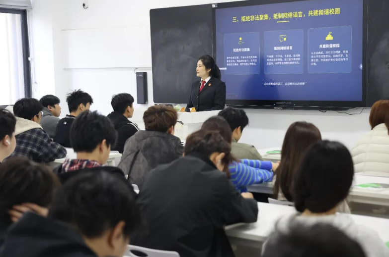 3月25日下午,张瑞明法官走进焦作新材料职业技术学院,以“守政治安全底线,拒邪教非法聚集,做守法有为青年”为主题开展宣讲。紧扣政治安全、反邪教、非法聚集三大核心,结合《中华人民共和国国家安全法》《中华人民共和国刑法》等法律条文,通过境外势力渗透窃密、邪教组织、校园非法聚集等典型案例以案释法,明晰法律红线与行为边界。同时引导大学生敬畏法律、珍惜青春,筑牢国家安全和自身发展的双重防线,争做知法、懂法、守法、用法的新时代有为青年。