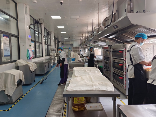 中牟职专工会主席刘伟红说,学校成立了食品安全领导小组,配备了食品安全“双总监”和食品安全员,并且实行校级领导陪餐制度,及时发现问题及时解决问题。同时,邀请家长和学生代表参与监督,每月开展一次家长代表陪餐,每学期组织2次以上学生代表检查餐厅,体验全过程管理。