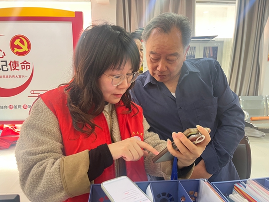活动现场,社区工作人员与志愿者早早做好准备,摆放好办公设备、整理好服务流程,以饱满的热情迎接前来办理年审的老年居民。针对老年居民不熟悉智能手机操作、对年审流程不了解等问题,志愿者提供“一对一、手把手”的专属服务,耐心指导老人打开年审小程序、完成身份核验、缴纳年度保险费,全程细致讲解每一个操作步骤,确保老人清楚了解年审流程与注意事项。对于行动不便、独自办理有困难的老人,志愿者们主动上前协助,全程代办相关手续,让老人无需费心就能顺利完成年审。