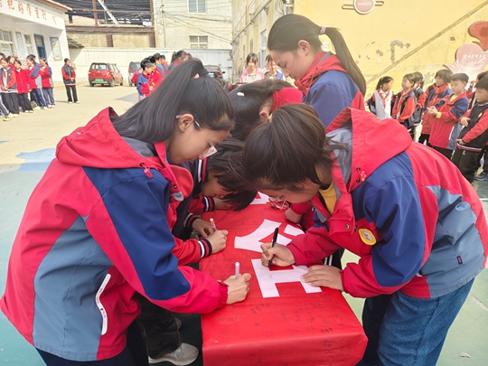 学生代表宣誓结束后,签名承诺环节正式开始。学校师生纷纷在“珍爱生命 预防溺水”主题横幅上郑重写下自己的名字,一笔一画都承载着对生命的敬畏、对安全的承诺,让防溺水意识深深烙印在每个人心中。
