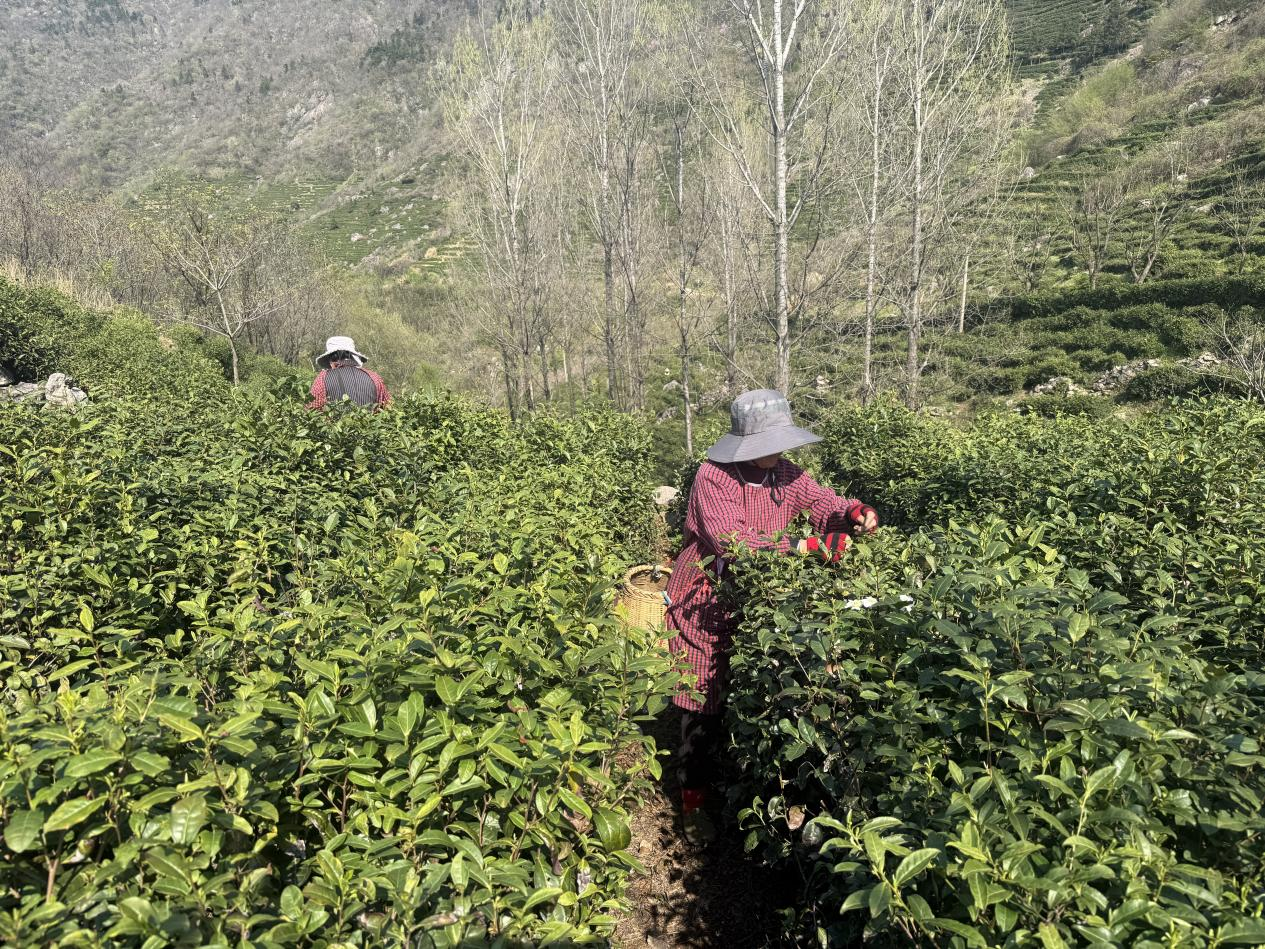 大河网讯 春回大别山,茶垄泛新绿。4月8日清晨,薄雾还未散尽,信阳市固始县段集镇青峰岭村的青峰云雾茶园里已是一派繁忙。采茶工指尖翻飞间,鲜嫩的茶芽便落入竹篓,也盛满了乡亲们增收的期盼。