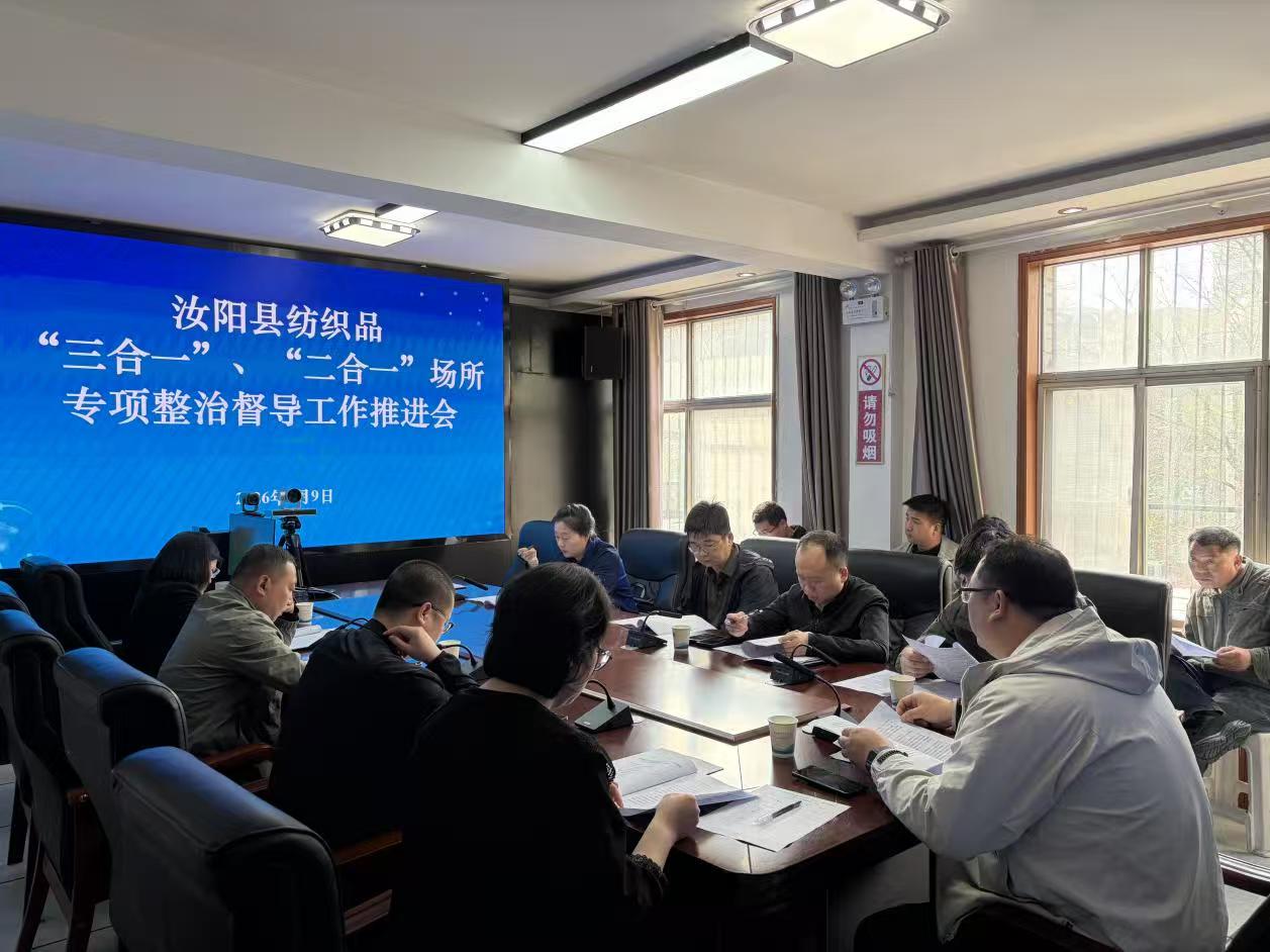 大河网讯 4月9日,洛阳市汝阳县安防委办在该县应急局二楼会议室,组织召开纺织品领域“三合一”“二合一”场所专项整治督导工作推进会,督导组主要成员参加会议。