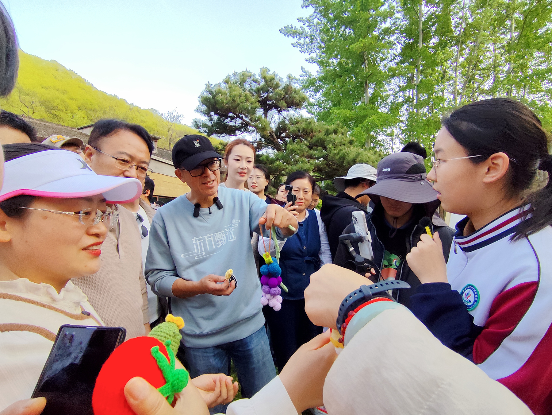 当日下午,济源市济水一中美育社团师生在学校玉泉校区校长李继红带领下,在济源市王屋山“小有洞天·山居”民宿附近开展情境化美育实践课程,与正在济源开展“东方甄选看世界济源行直播活动”的新东方教育科技集团董事长、东方甄选CEO俞敏洪团队不期而遇。