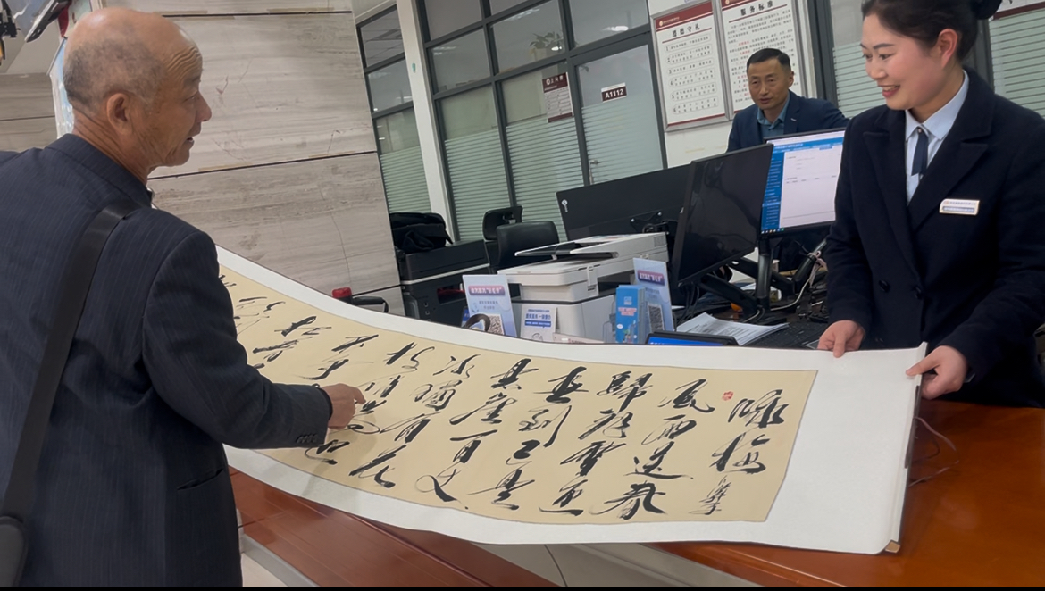 当日下午,意犹未尽的甘先生再次来到大厅,将一幅亲笔书写的《咏梅》书法作品赠予工作人员。这一举动不仅是对窗口服务的最高褒奖,更是光山籍在外人士对家乡发展变化的高度认同。
