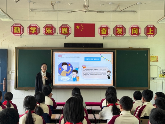 大河网讯 为深入推进青少年法治教育要求,增强未成年人法律意识和自我保护能力,营造平安和谐的校园环境,4月23日,中牟新区雁鸣湖司法所联合镇聘实习律师刘国英走进万庄村小学,为全校师生带来了一场主题为“学法守法,守护成长”的普法宣传活动。